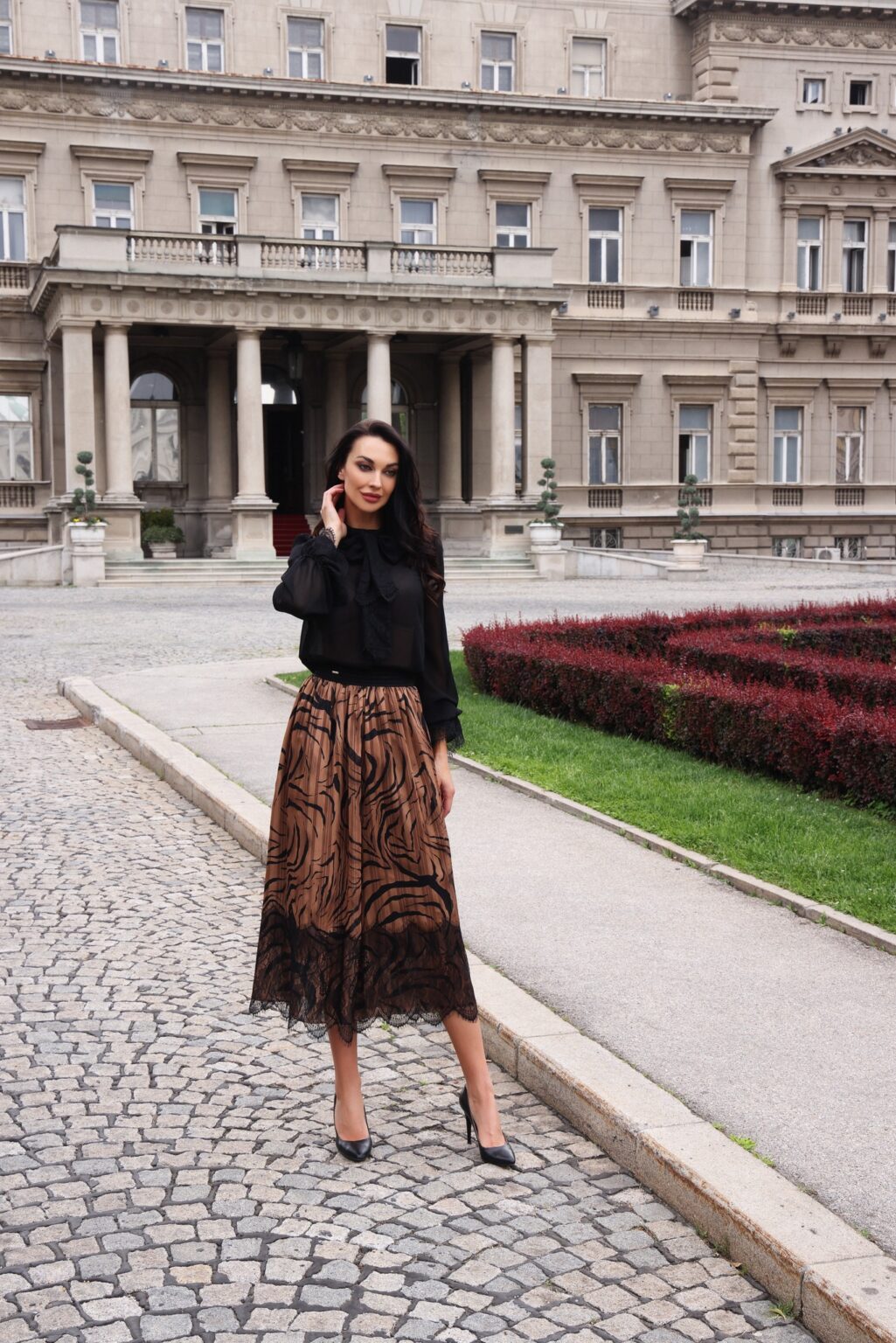 Elegantna košulja od muslina ukrasna bogatom masnom i cipkom za vezivanje.